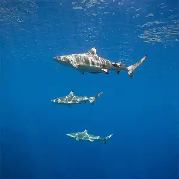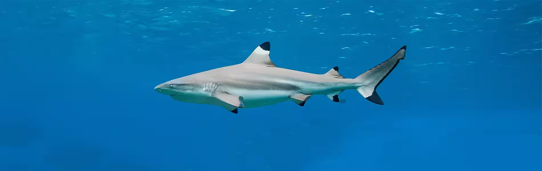 - Color & markings: Blacktips are typically dark gray to bronze-gray on top with a white underside. As the name suggests, many of the fins show solid black tips, especially the first dorsal fin, pectoral fins, and lower lobe of the tail. Unlike Spinners, Blacktips usually do not have a black-edged anal fin, which is a key field mark when separating the two.